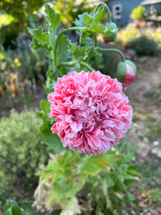 Frosted Salmon Peony Poppy, Papaver somniferum Poppy Seed