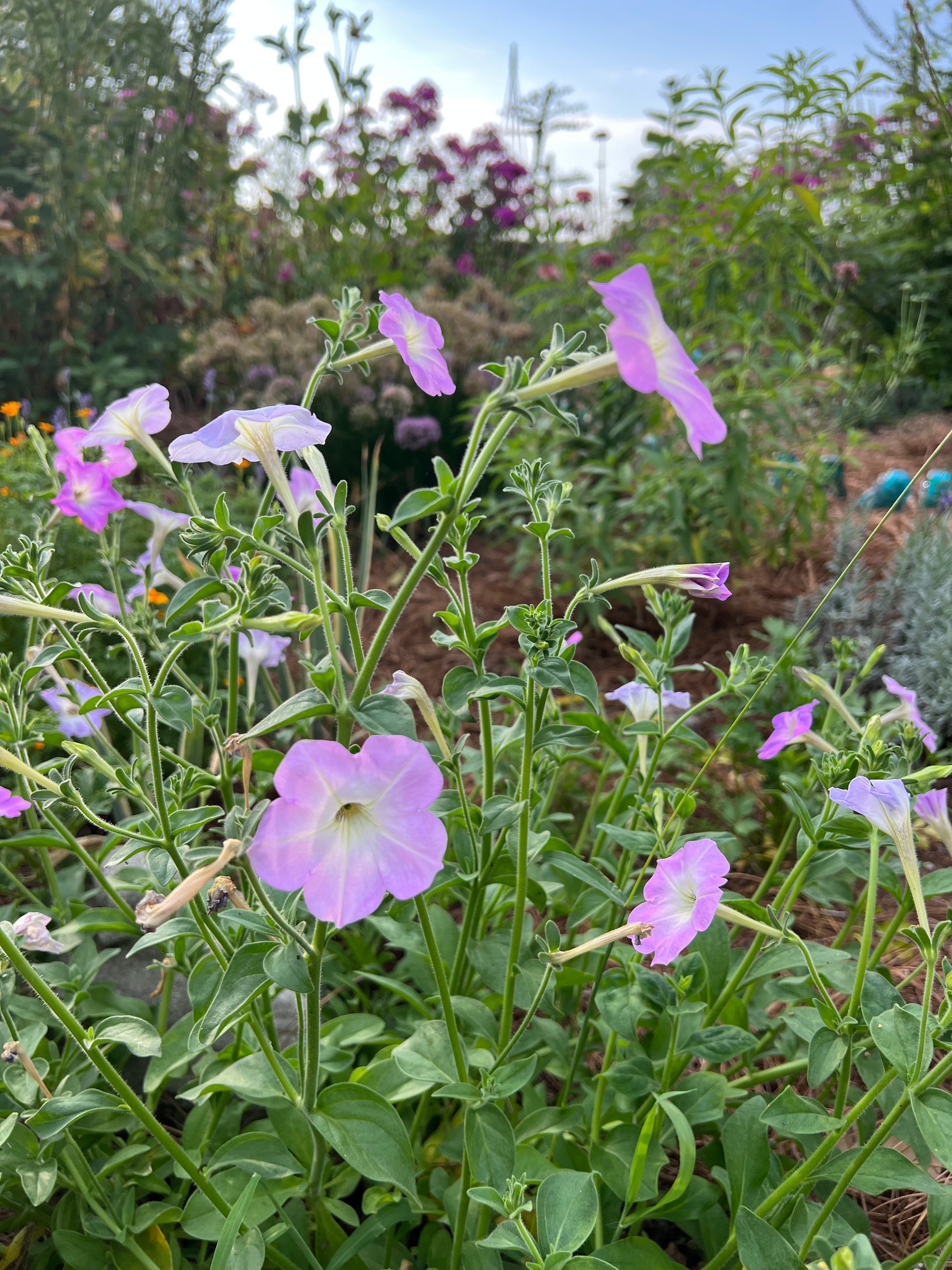 These old fashioned fragrant petunias are a delight in the garden. Petunias, loved by hummingbirds and pollinators, can be grown in beds or containers. The seed mix contains white, lavender, purple and magenta. I like to grow them near seating areas where the delicate fragrance can be enjoyed up close.